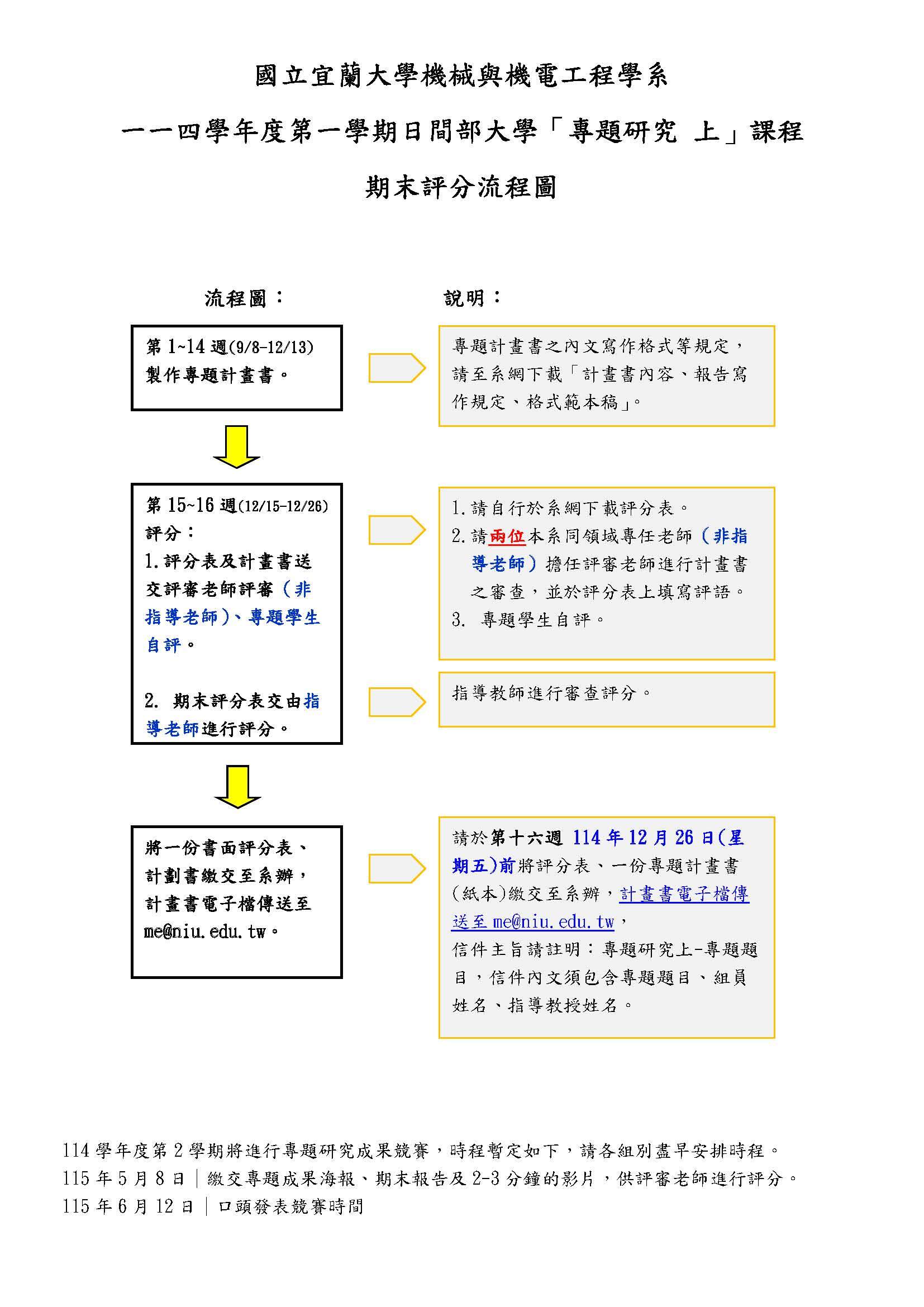 【專題公告】114-1「專題研究上」課程期末計畫書格式與時程